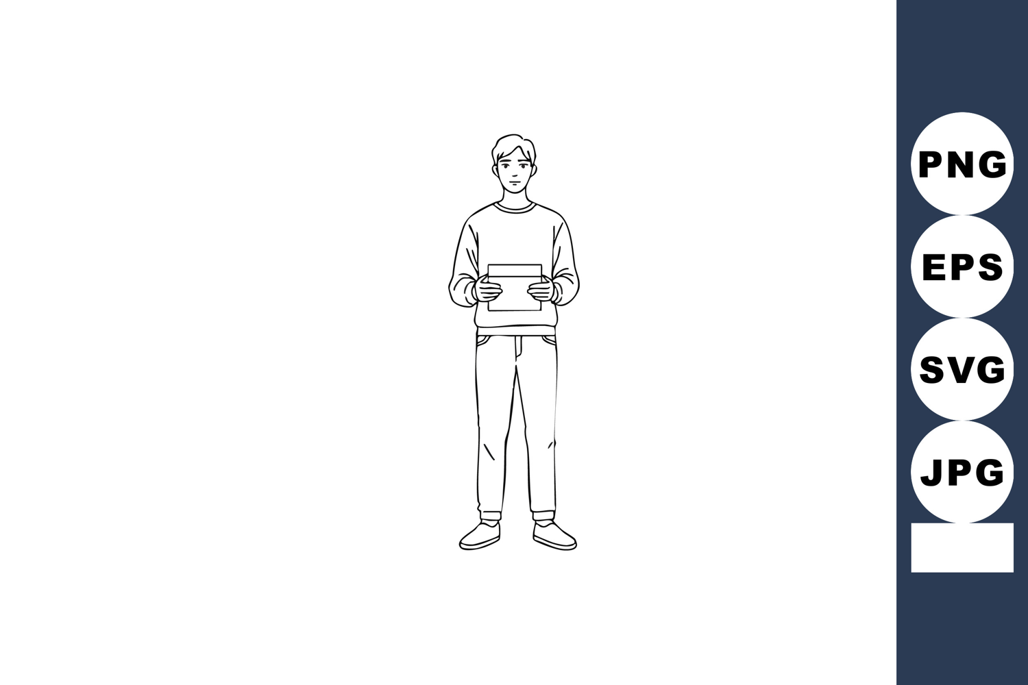 Similar Design Products to Young man holding a laptop standing simple line art vector i