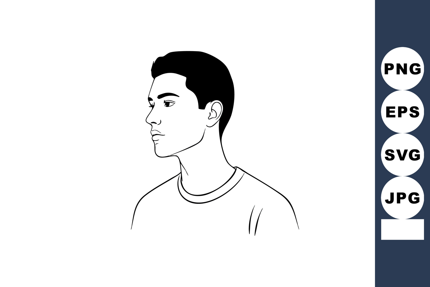 Young man side profile minimal black and white vector illust example image 1