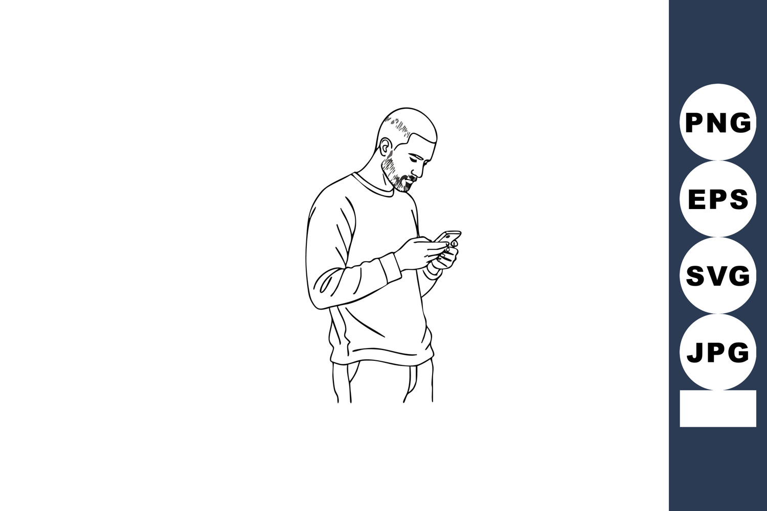 Similar Design Products to Man using smartphone standing casual pose simple line art ve