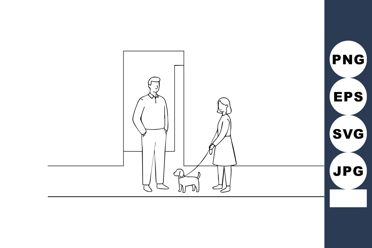 Similar Design Products to Man and Woman Walking Dog Outline Vector Illustration with M