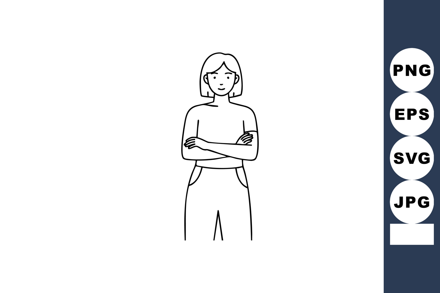 Woman standing with crossed arms confident pose simple line