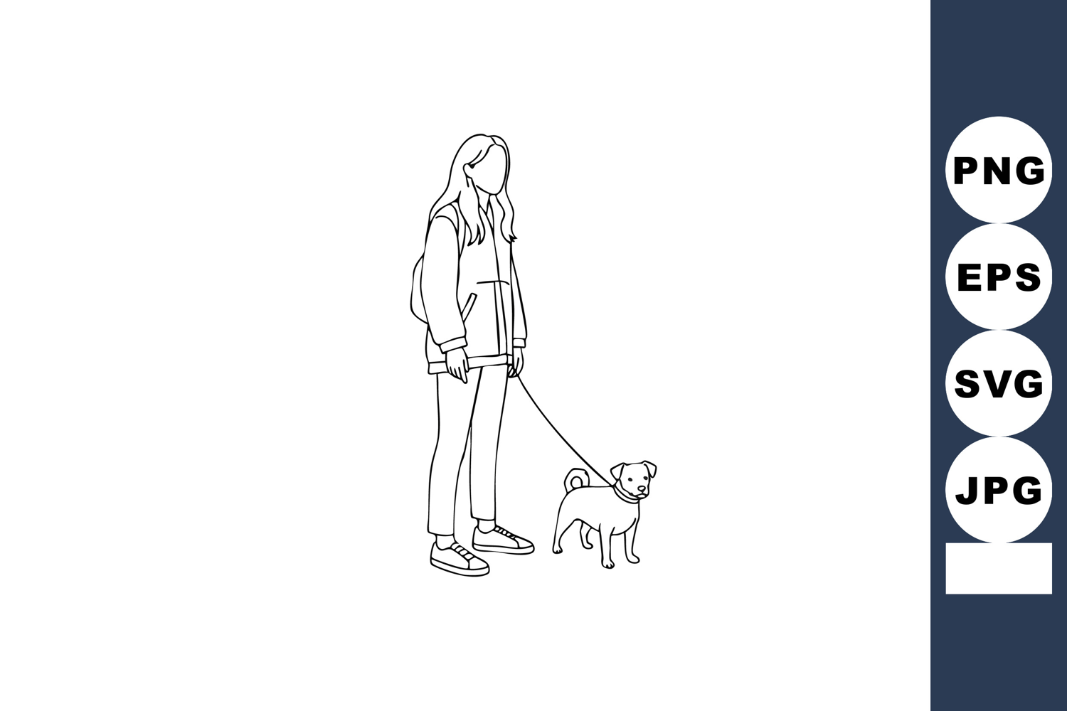 Woman walking small dog on leash casual outfit vector illust example image 1