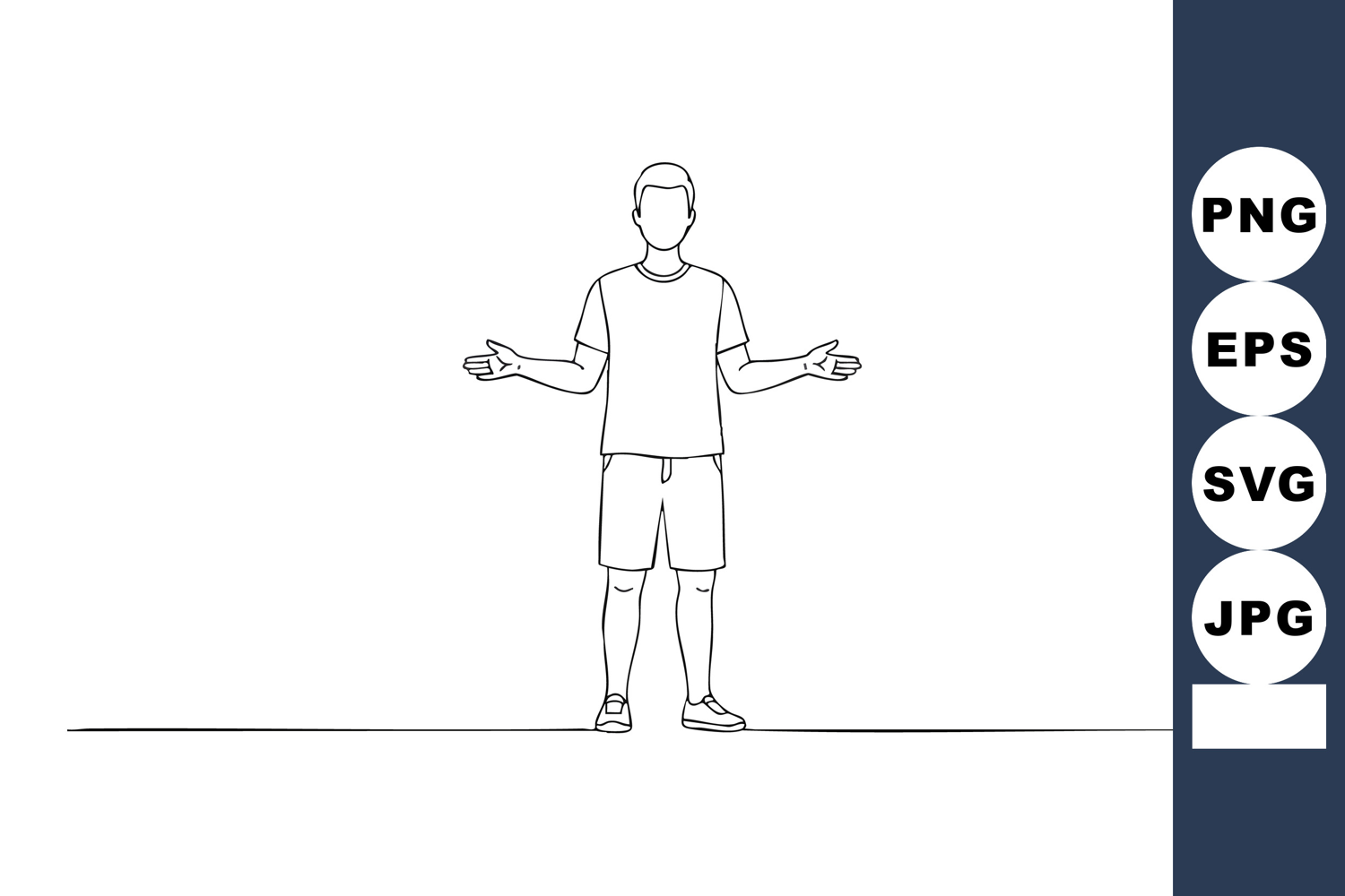 Outline Man Minimal Line Art Male Person Standing Open Arms Figure Gesture