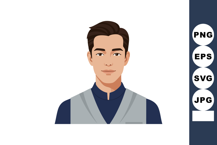 Young man portrait with short brown hair and blue vest vecto example image 1