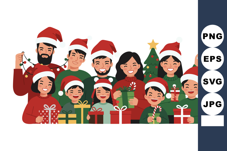 Family Holiday Tree Christmas Celebration Christmas Tree Present Gift Santa Hat Festive