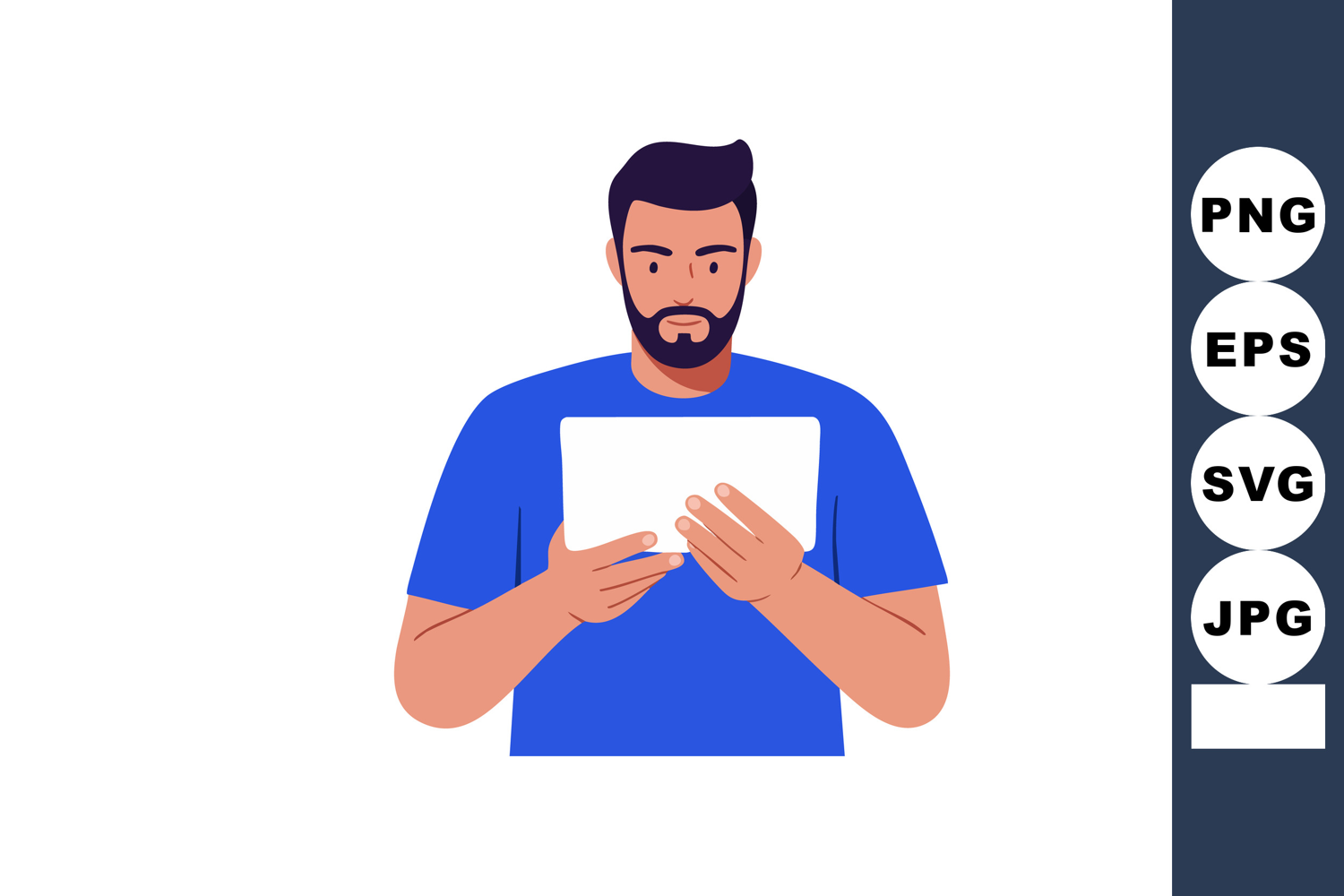 Man in blue shirt using digital tablet technology vector ill example image 1