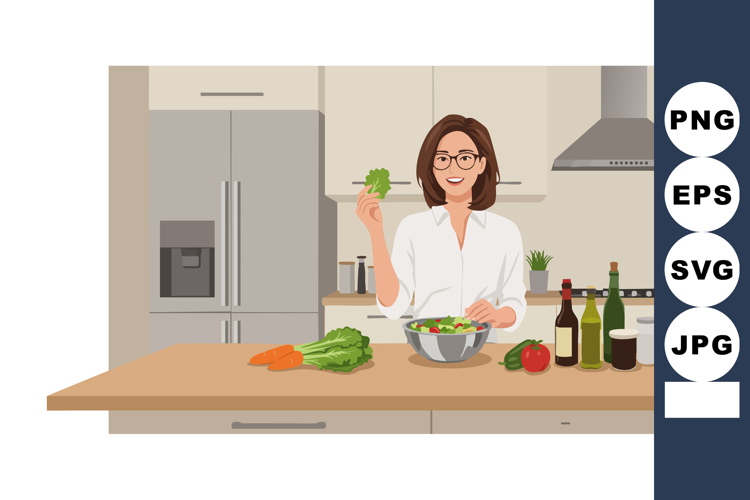 Similar Design Products to Woman Preparing Fresh Salad in Modern Kitchen with Vegetable