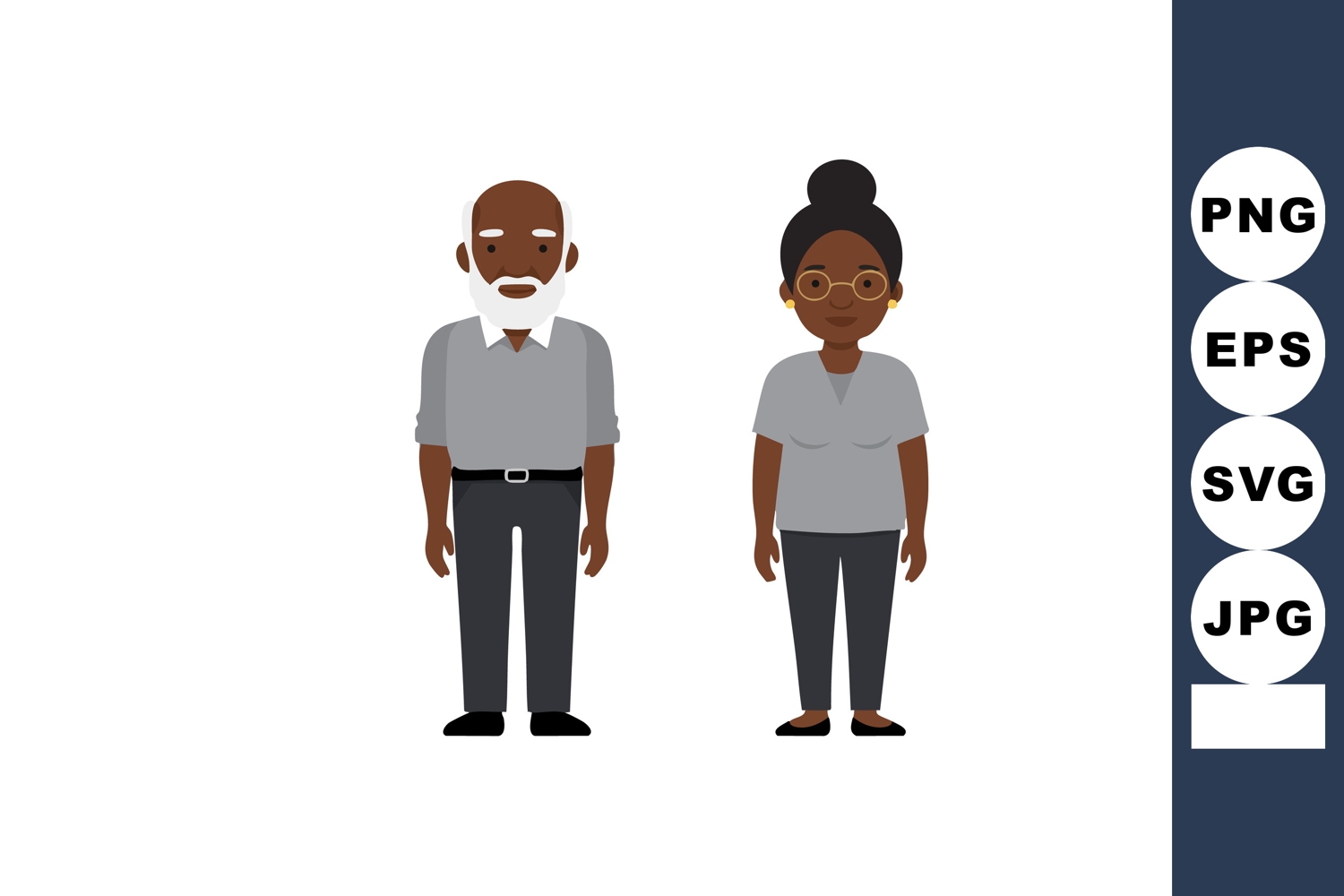 Vector illustration shows an elderly man and woman standing side by side wearing casual clothes in a neutral pose calm mood.