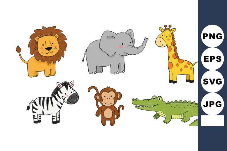 Cartoon Animal Cute Wild Giraffe Lion Monkey Elephant Zebra Crocodile