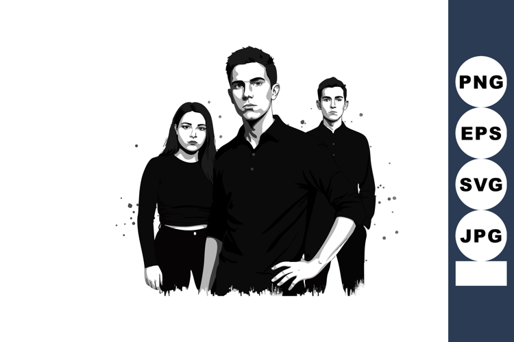 Black Clothing Young Monochrome People Standing Group Serious Confident Adults