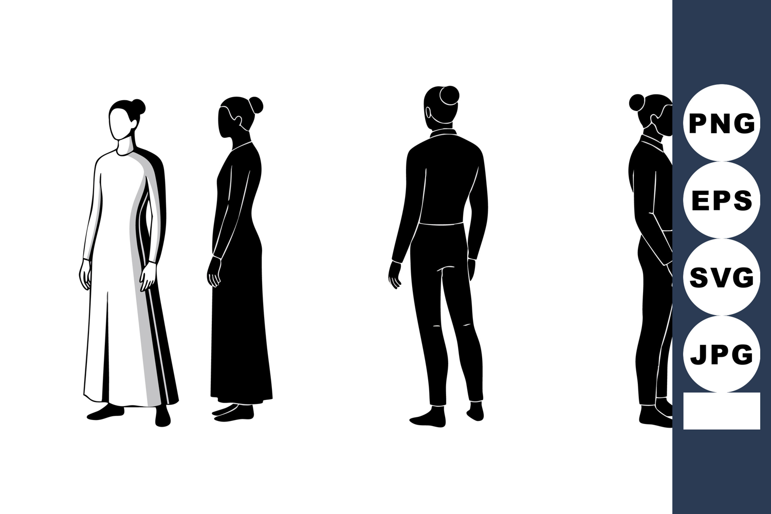 Man Woman Silhouette Pose Front View Standing Profile Side View Back View Figure