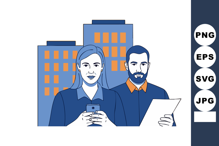 Man Business Professional Office Woman City Teamwork Smartphone Documents Productivity