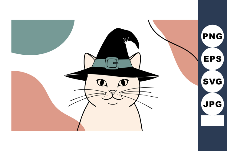 Illustration Animal Vector Halloween Witch Cat Hat Pet Feline Whiskers