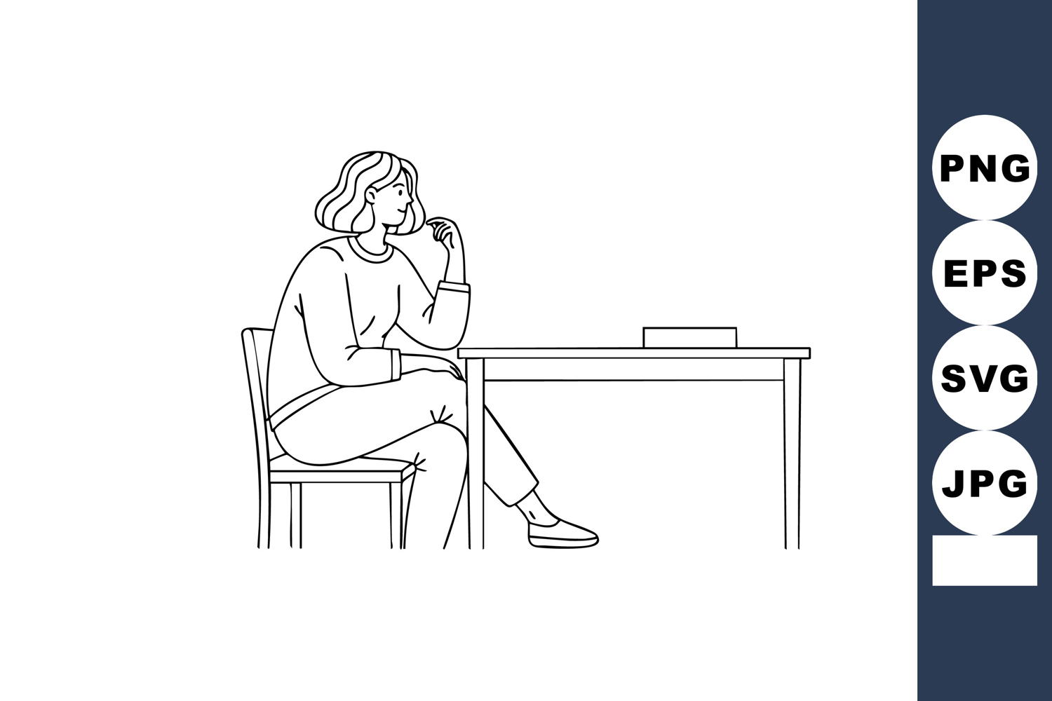 Woman Sitting at Desk Thinking Vector Illustration in Minima example image 1