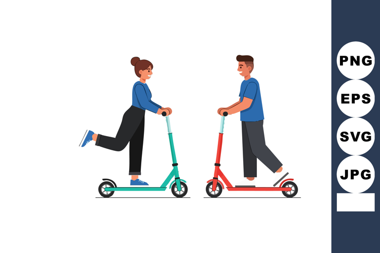 Young Man and Woman Riding Electric Scooters in Casual Cloth example image 1