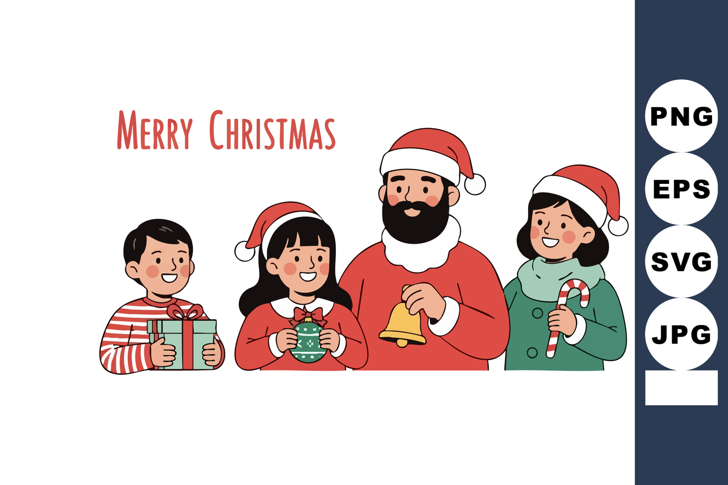 Similar Design Products to Christmas family with Santa Claus in festive hats holding gi