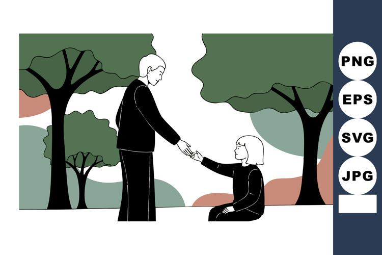 Helping hand between two people in nature with trees and gre example image 1
