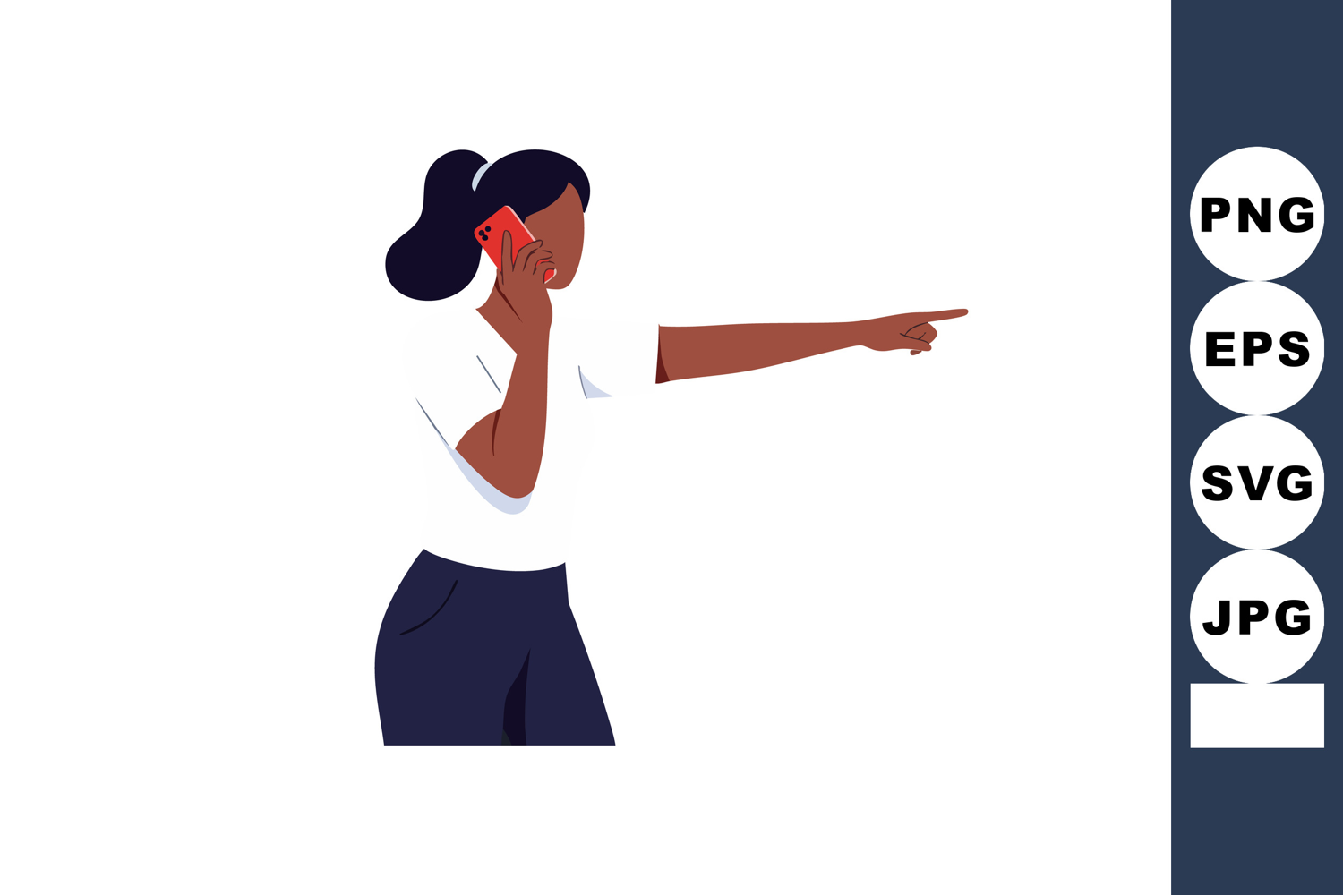 Illustration Hand Vector Casual Communication Woman Phone Talking Pointing Outfit