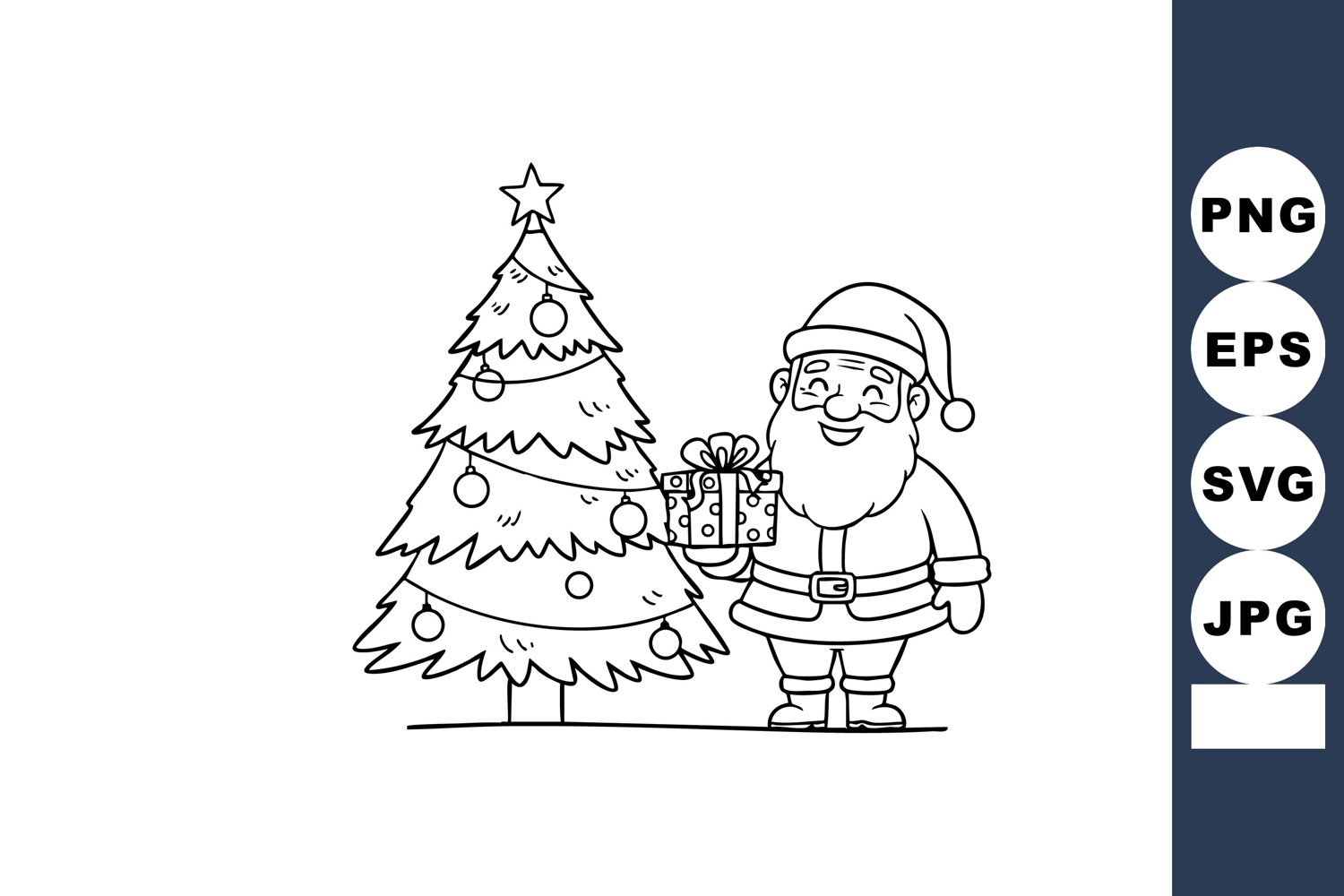 Santa Claus holding gift near decorated Christmas tree line example image 1