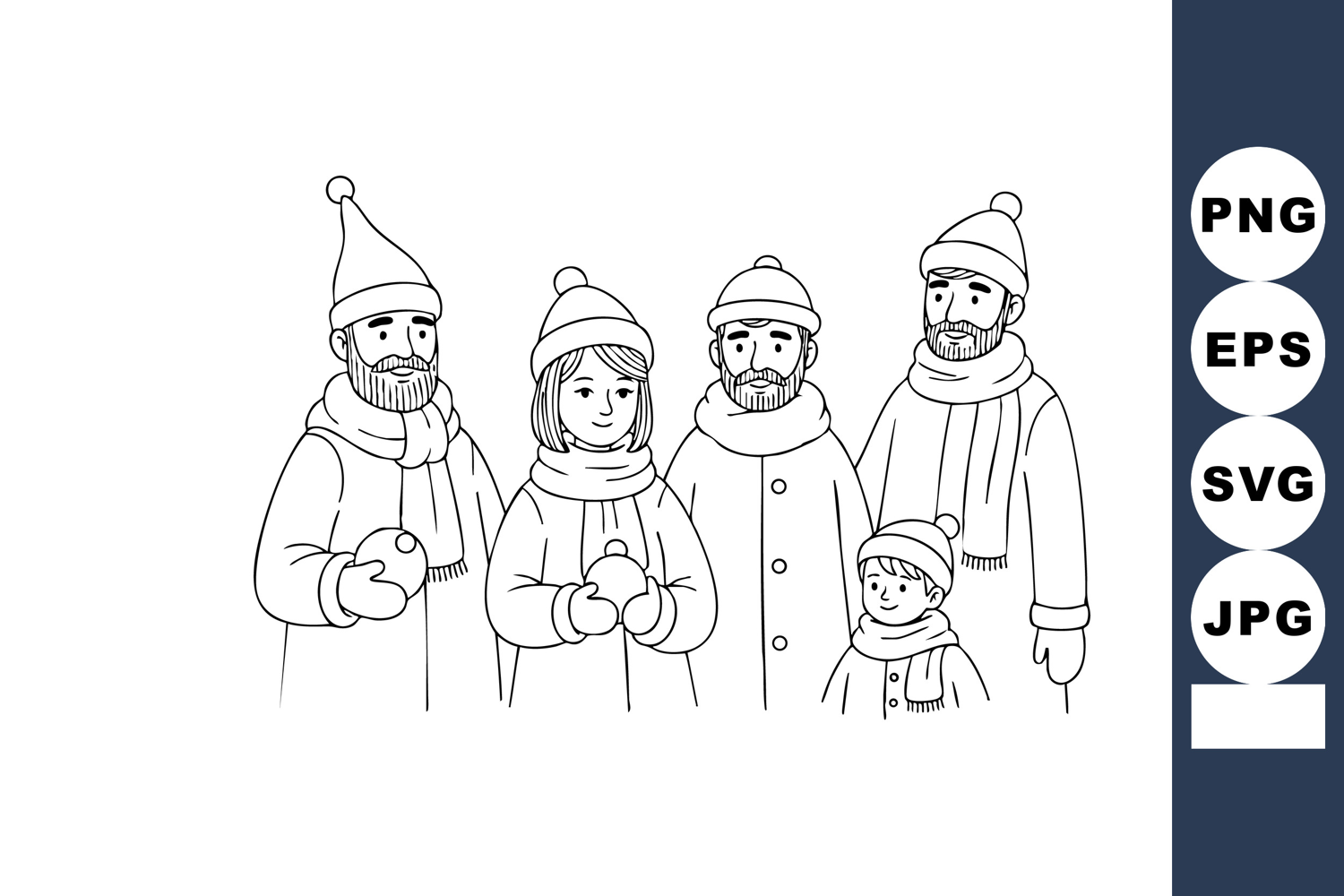 Family wearing winter hats and scarves in cold weather vecto example image 1