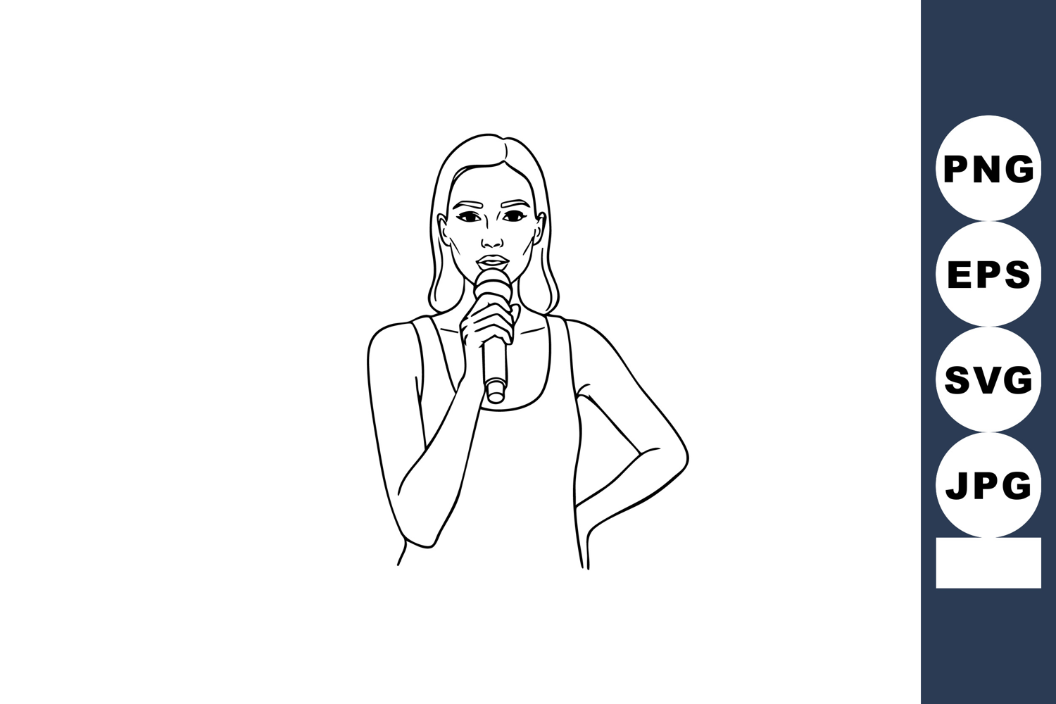 Illustration Vector Music Woman Microphone Performance Confidence Passion Singing Lineart