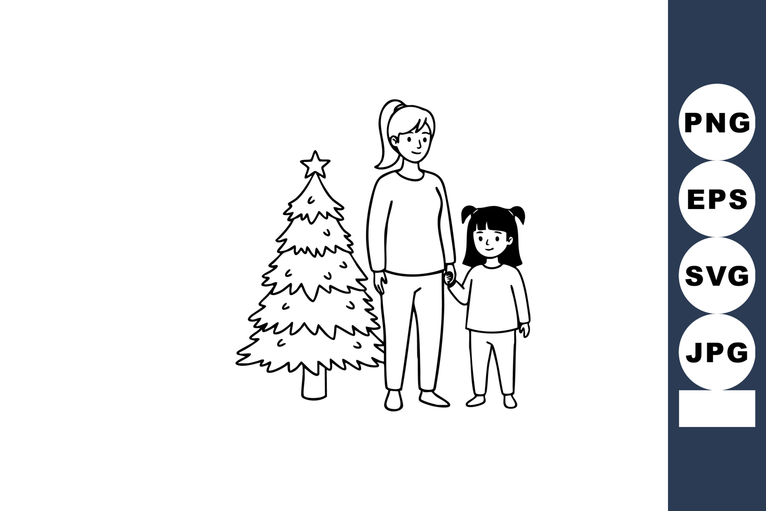Similar Design Products to Mother and daughter holding hands beside decorated christmas