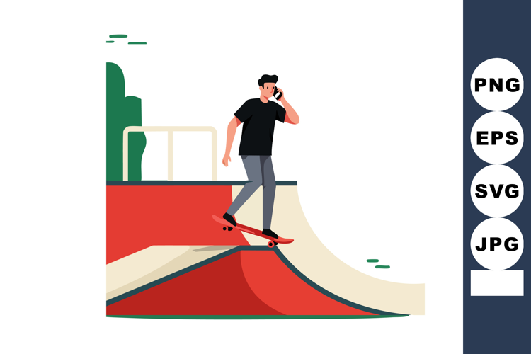 Man Casual Young Male Phone Talking Ramp Skateboarding Skateboarder Skatepark