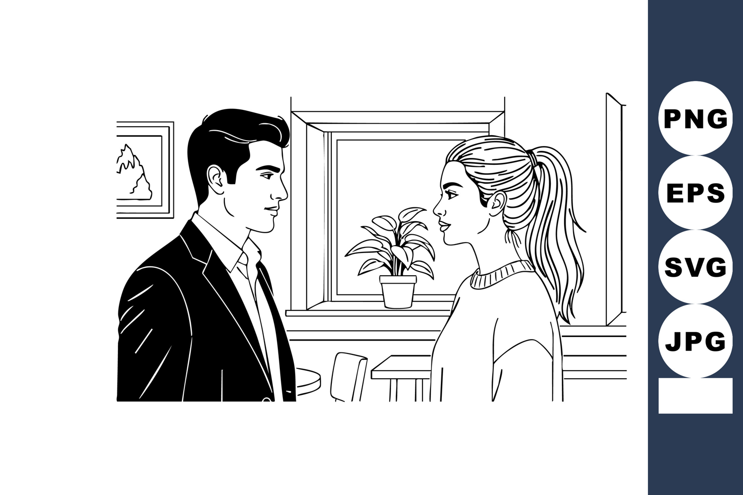 Man Interior Woman Plant Home Window Conversation Discussion Room Dialogue