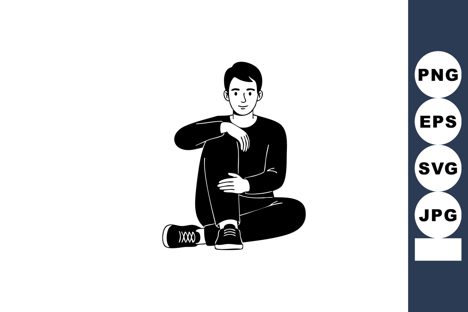 Similar Design Products to Young man sitting cross-legged in casual clothes black and w
