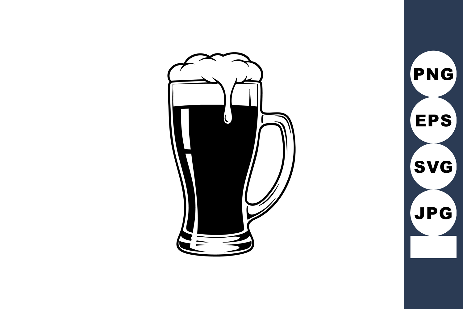 Dark beer mug with foam vector illustration in black and whi example image 1