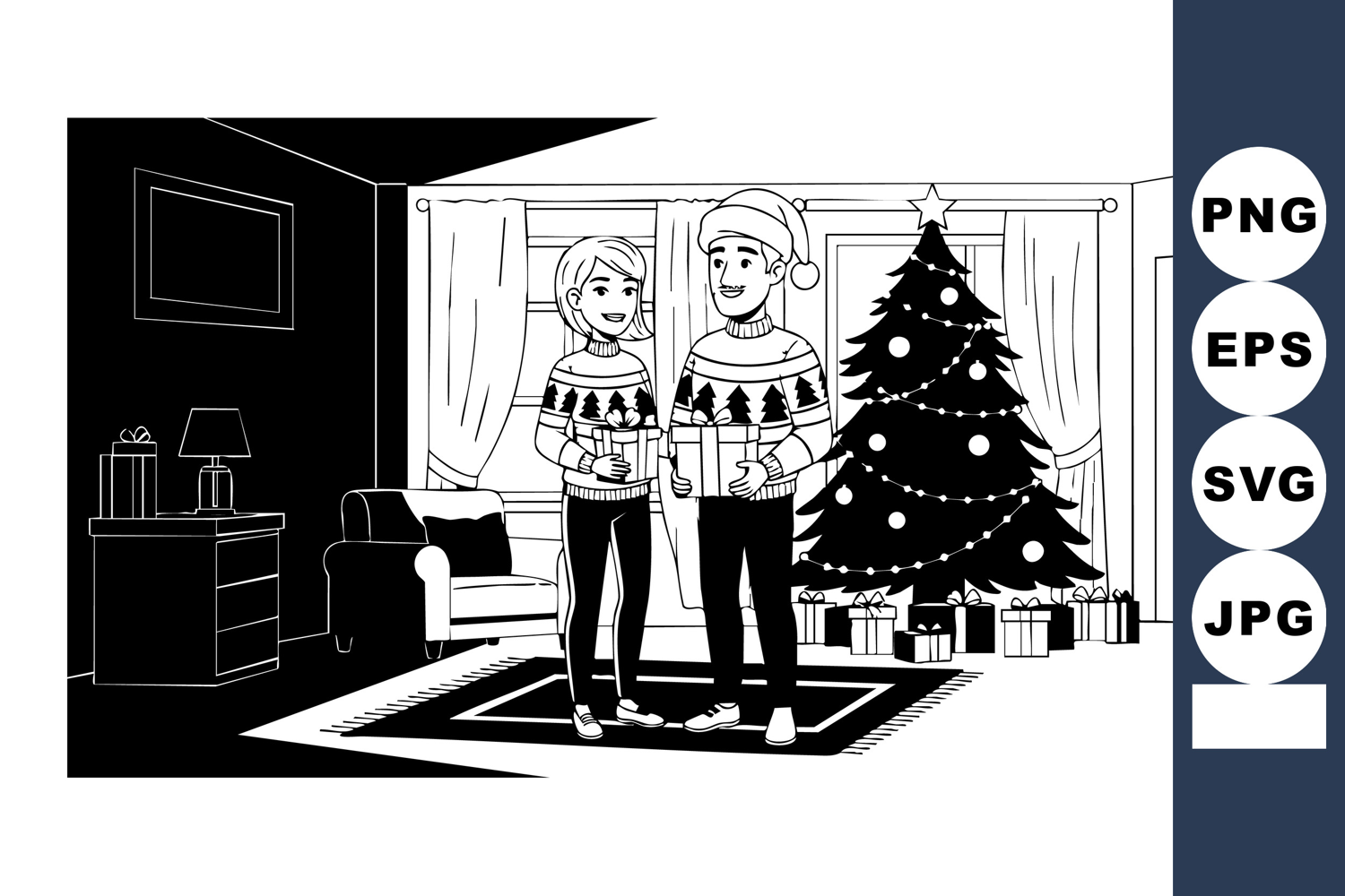Similar Design Products to Two children celebrating Christmas with decorated tree and g