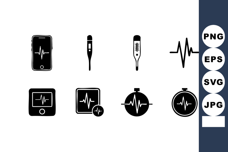 Icon Heartbeat Health Medical Device Monitor Thermometer Temperature Wellness Pulse