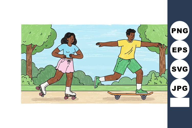 Similar Design Products to Children enjoying outdoor activities skating and skateboardi