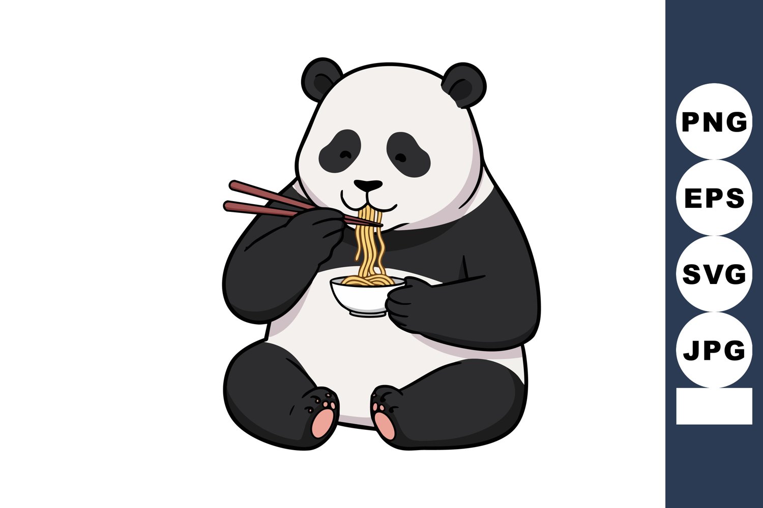 Panda eating noodles with chopsticks cute sitting cartoon ve example image 1