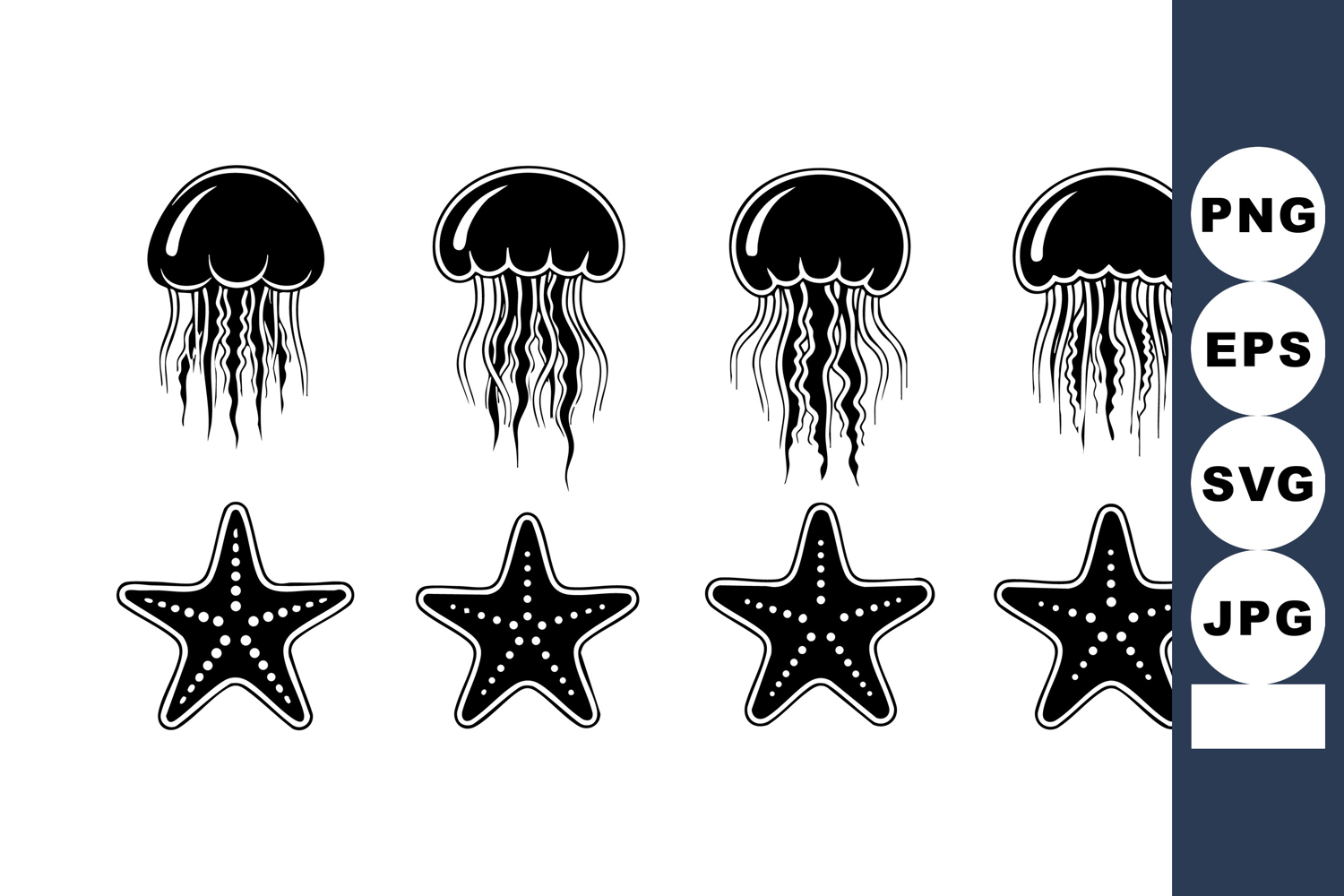 Illustration Vector Black Ocean Sea Silhouette Marine Starfish Underwater Jellyfish