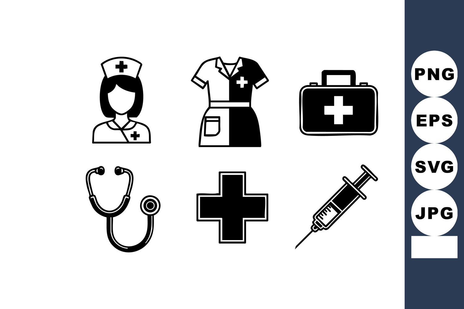 Medical and healthcare icons including nurse, uniform, first