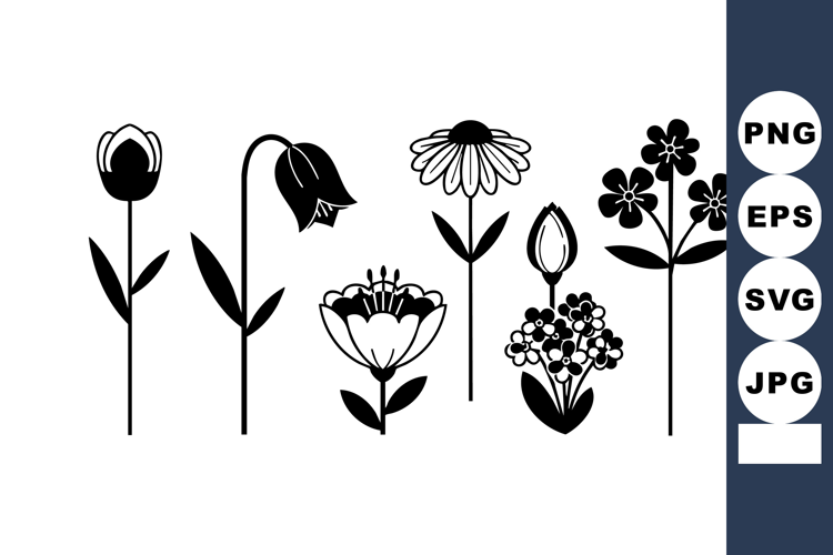 Similar Design Products to Black and white silhouette floral vector set with six differ