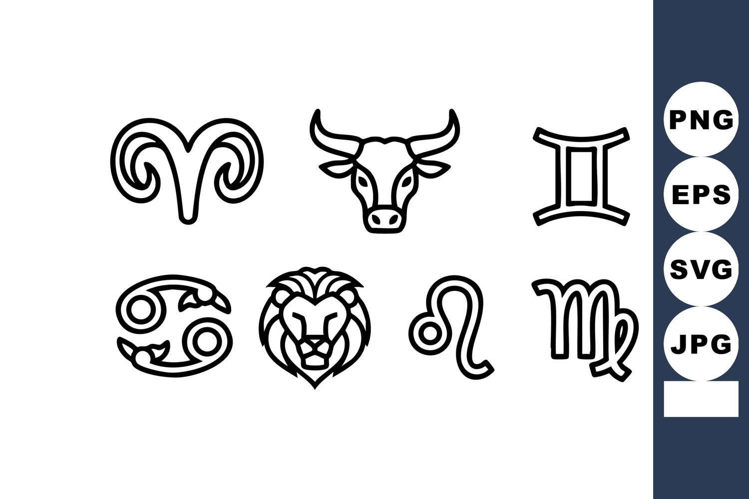 Zodiac signs Aries Taurus Gemini Cancer Leo Virgo black line example image 1