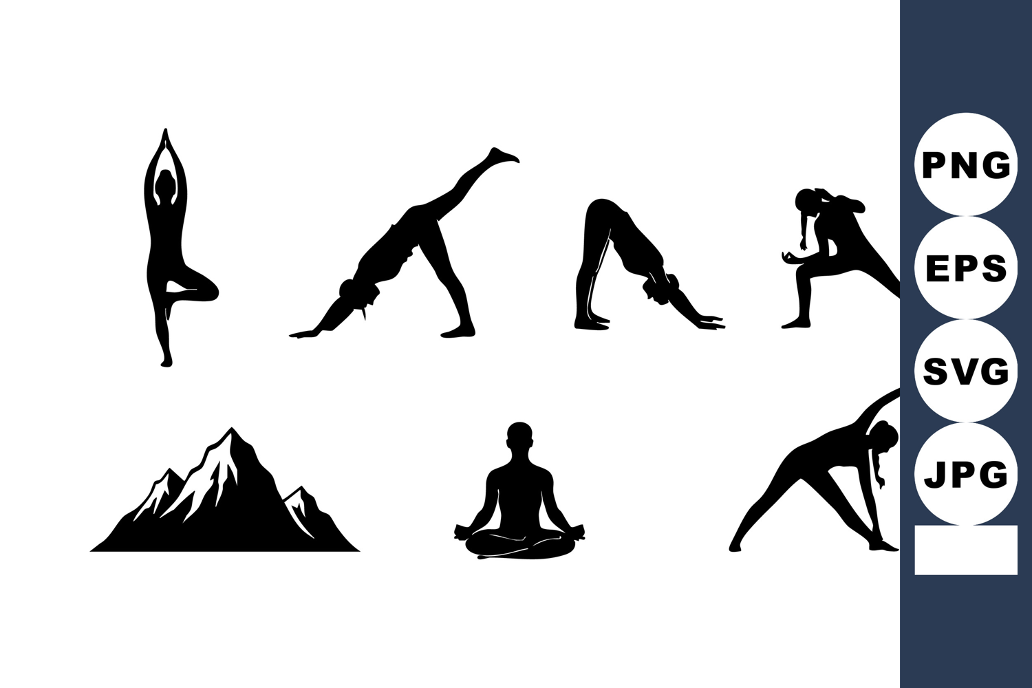 Yoga Poses Silhouettes with Mountain Landscape Vector for Mi example image 1