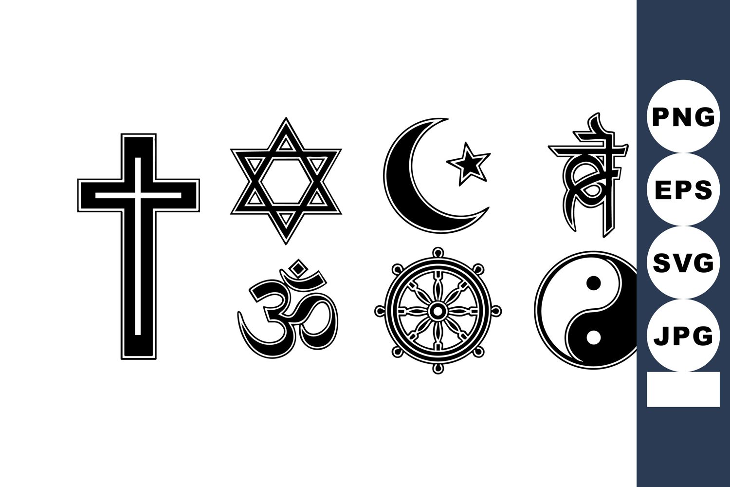 Religious symbols cross star of david crescent om dharma whe example image 1