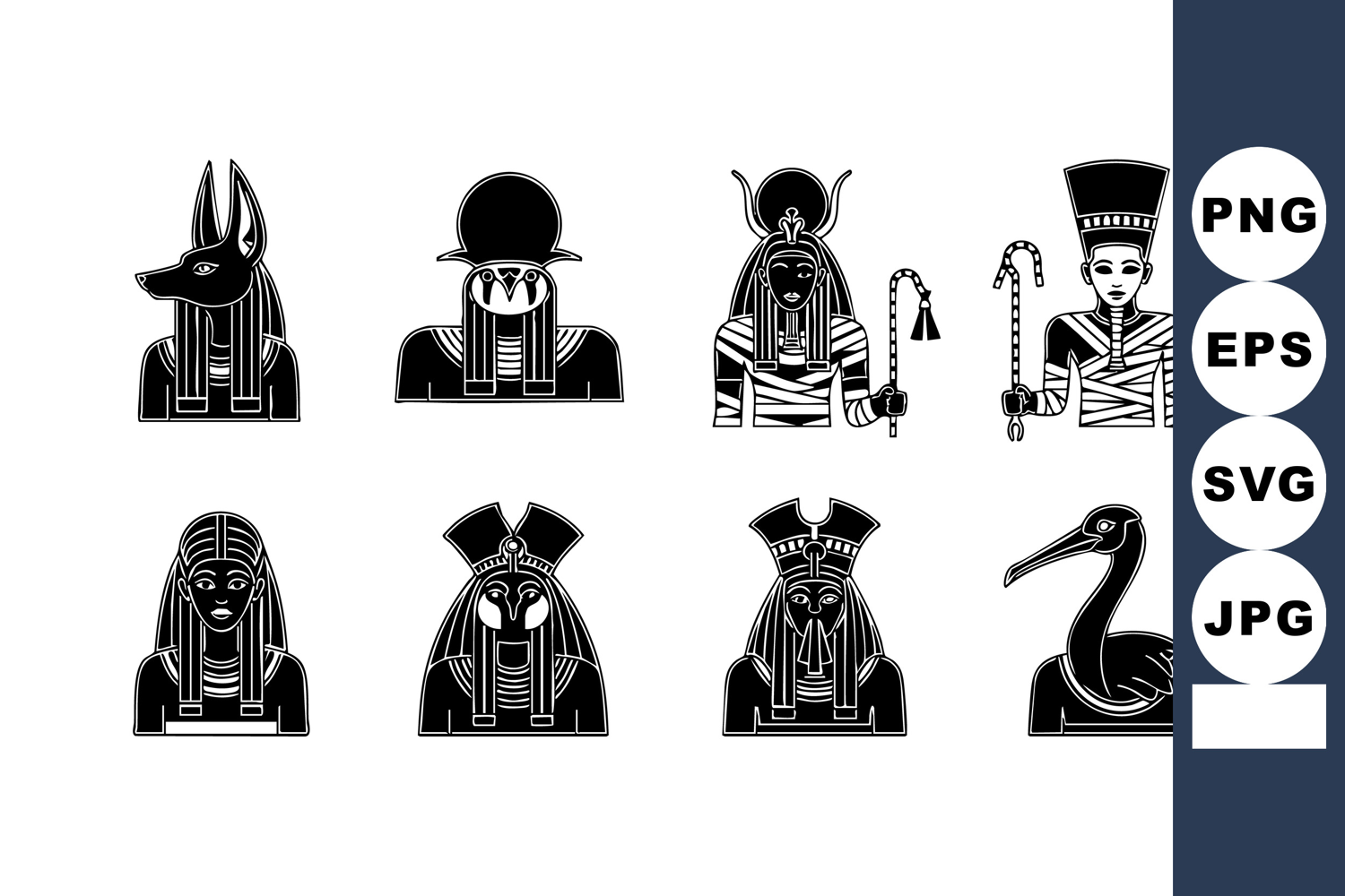 Ancient Egyptian Gods and Symbols Vector Set with Black Silh example image 1