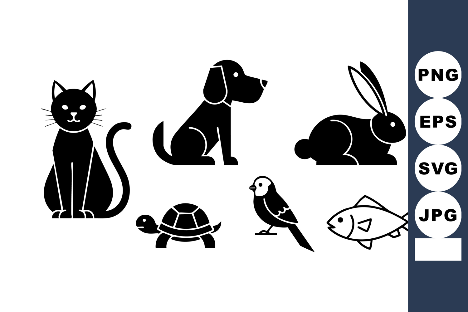 Similar Design Products to Silhouette set of common pets cat dog rabbit turtle bird fis