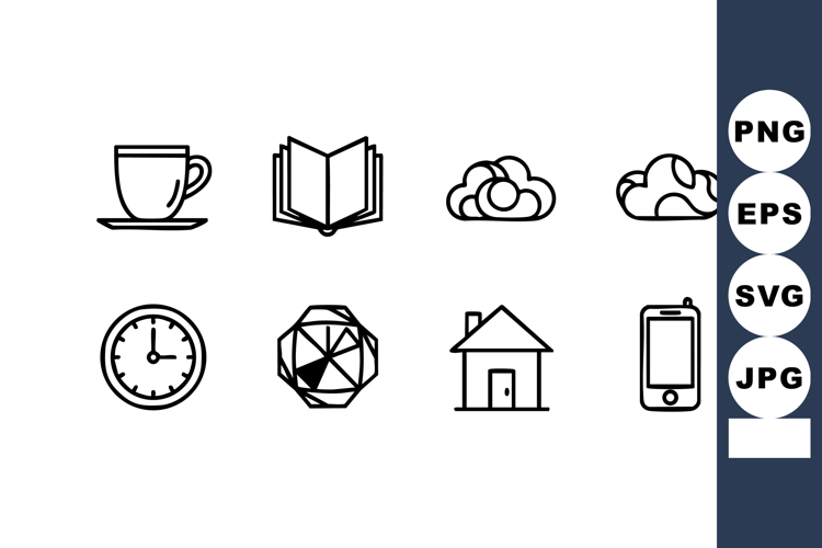 Minimalist black and white icons set with coffee cup book cl example image 1