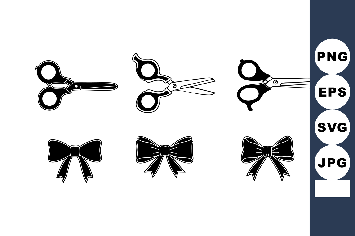 Similar Design Products to Black silhouette scissors and bows set with various open and