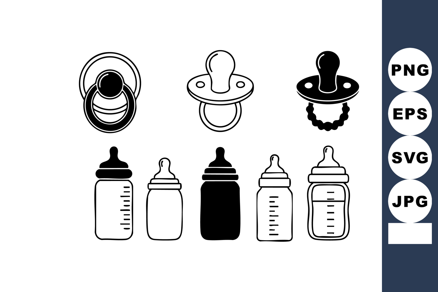 Baby pacifiers and feeding bottles set simple black and whit example image 1