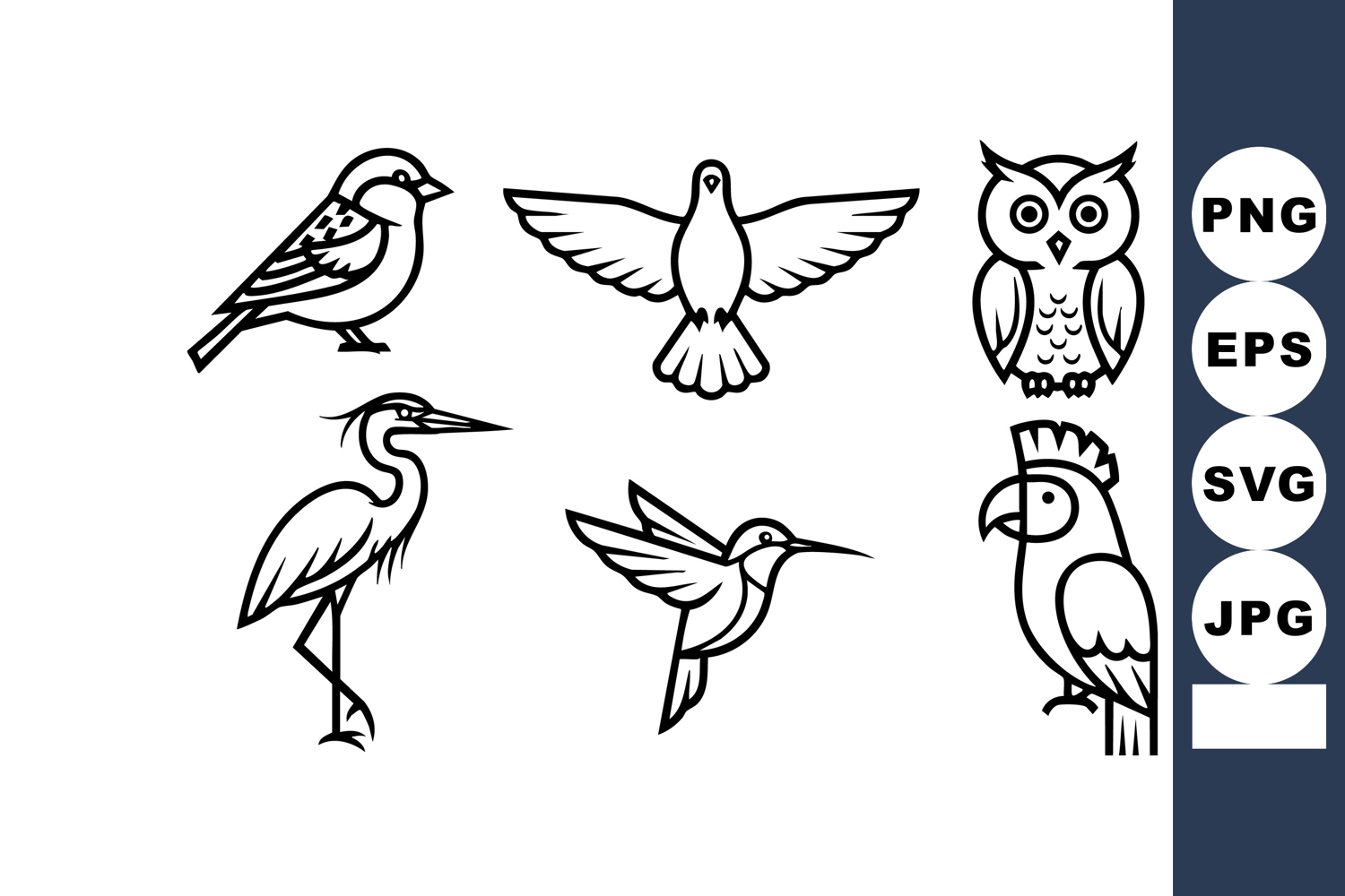 Line Vector Art Bird Parrot Owl Hummingbird Dove Sparrow Heron