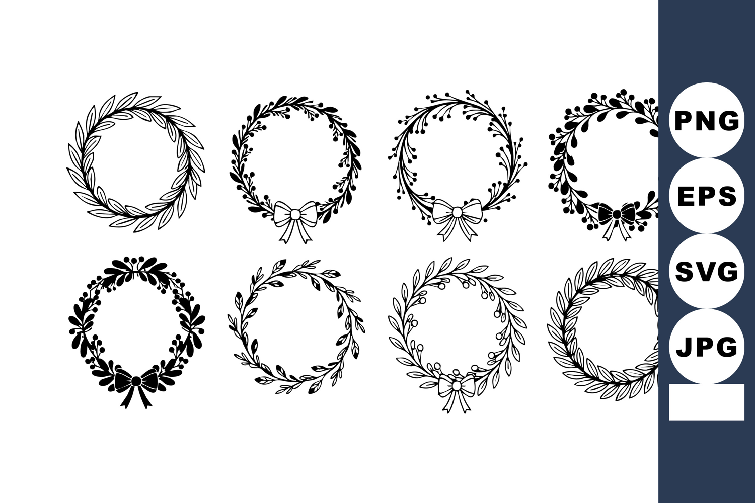 This vector set features eight decorative vintage wreaths with intricate floral and leaf patterns, ideal for design and illustration projects, evoking elegance and classic style. Artistic and detailed.