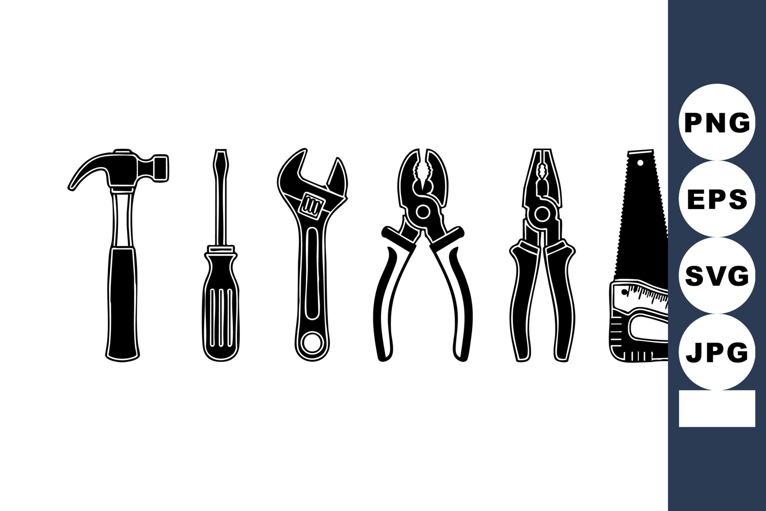 Hand Black Silhouette Hammer Saw Tool Repair Wrench Pliers Screwdriver