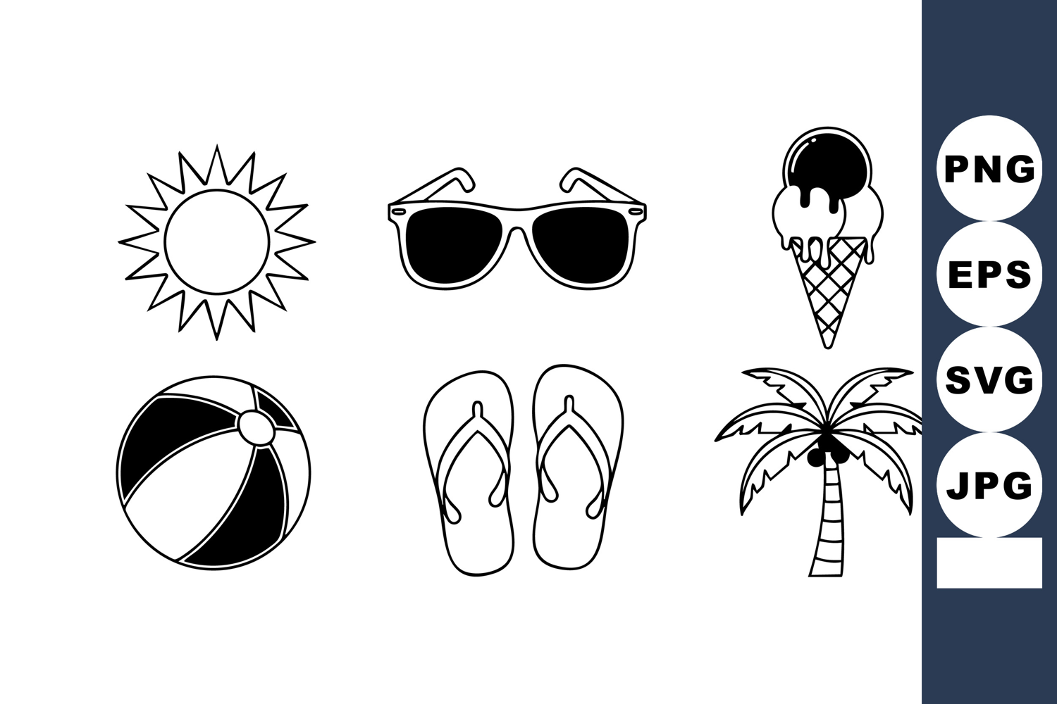 Summer icons set with sun, sunglasses, ice cream, beach ball example image 1
