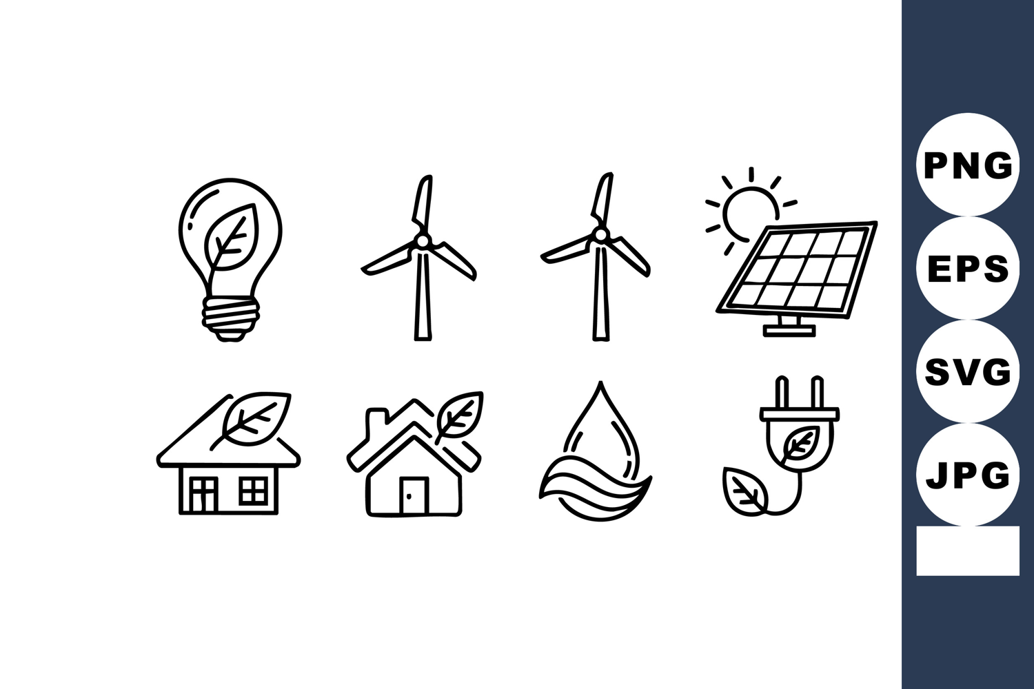 Renewable energy vector icons representing sustainable power